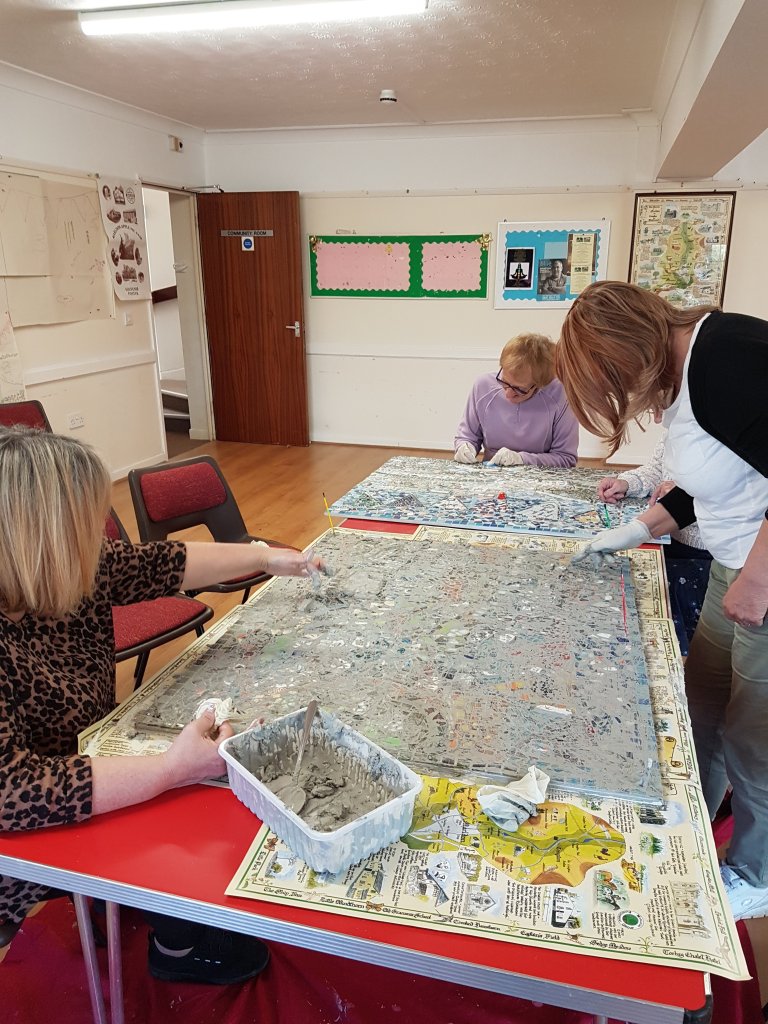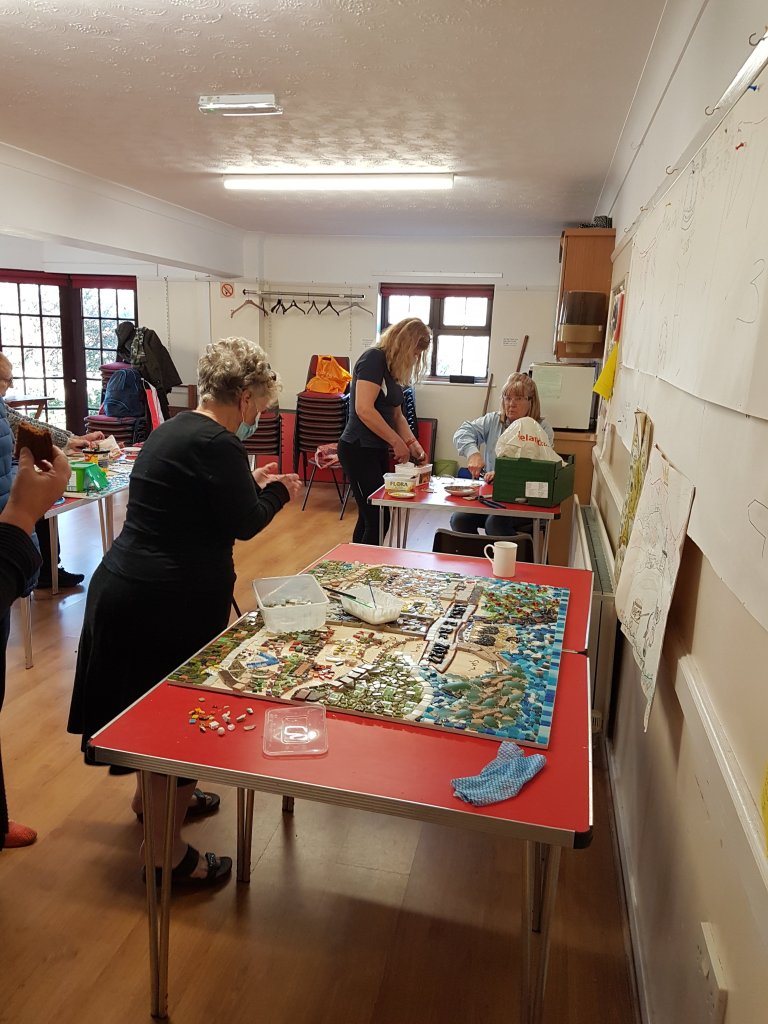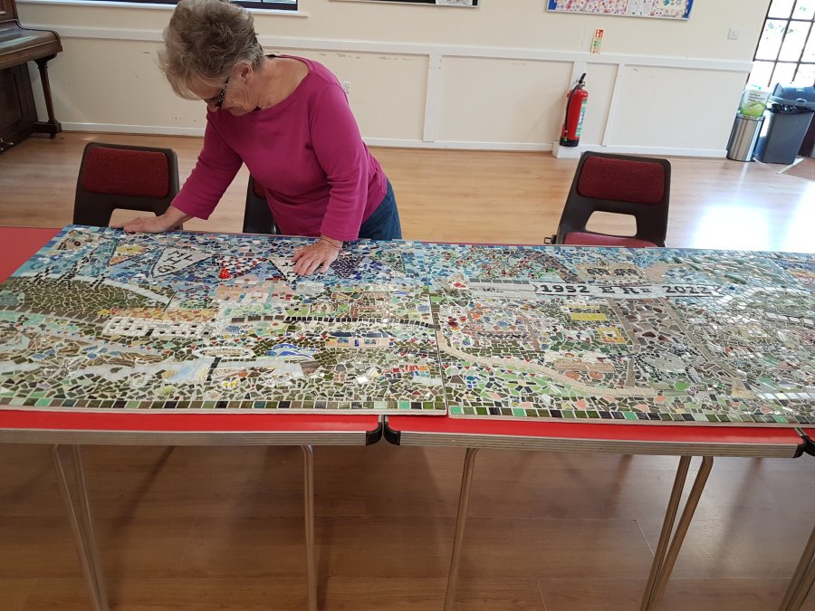 Our Local History Group has been thriving for 20 years but like most village groups our members are mostly retired folk, we have an amazing archive of material and many stories gathered and recorded from people’s memories. Covid lockdown meant that we couldn’t meet regularly as before, and we recognised the need to involve people again to ensure our group survives going forward. We have long recognised that we need to encourage younger people to get involved and most importantly bring history to life, we now have a Facebook page and are working on a Covid capsule recording people’s memories of the past 2 years. The mosaic is our attempt to bring history to life.