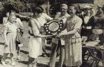 a Sports day presentation to John Wills by Mr Harris and Mrs Harvey