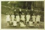 the School play of Ali Baba from 1928 (back l-r) (?), (?), Audrey Plimsoll, Nellie Wills, (?), Margaret Bond, Doris Trevassey, (?), (?), (middle l-r) (?) Collins, Phylis Blake, Pat Moriarty, Jack Coker, Henry Hill, (?), (?) Bond, Len Hill, (?), Jack Westaway, (2nd row from front) Jack Selley, Kathleen Moriarty, Alf Lovo, Gwen Langworthy, Dennis (?)